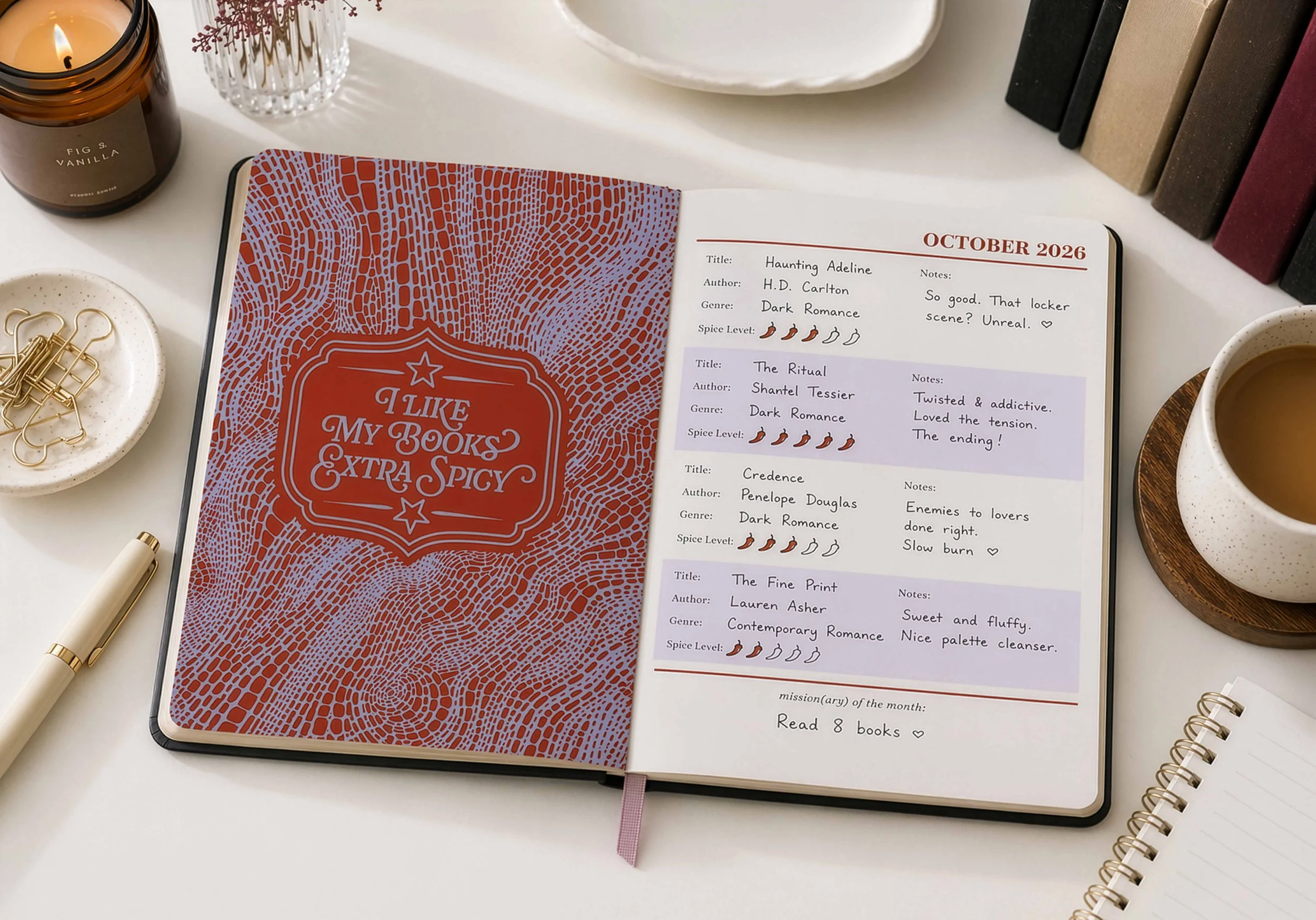 A discreet planner for modern romance readers who like it spicy.